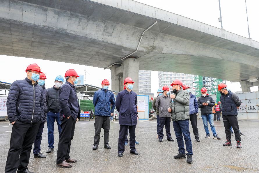 葉善祥一行先后來到潤揚路互通工程、運河路一期工程、萬??焖俾饭こ淌┕がF(xiàn)場,詳細了解快速路各標(biāo)段人員返崗復(fù)工、疫情防控舉措、項目建設(shè)進展及安全生產(chǎn)管理等工作情況。隨后召開了疫情防控及復(fù)工復(fù)產(chǎn)推進會,進一步研究部署疫情防控和加快推進項目建設(shè)工作。
