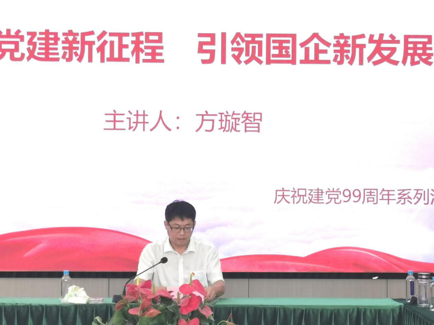 根據(jù)集團(tuán)黨委《關(guān)于開(kāi)展集團(tuán)領(lǐng)導(dǎo)班子成員掛鉤聯(lián)系基層組織工作的通知》文件精神,為慶祝中國(guó)共產(chǎn)黨成立99周年,進(jìn)一步加強(qiáng)廣大黨員干部的黨性教育,增強(qiáng)黨組織的凝聚力和戰(zhàn)斗力,激發(fā)黨員干部積極向上的工作熱情,7月6日上午,集團(tuán)黨委委員、副總經(jīng)理方璇智赴置業(yè)公司,以《開(kāi)啟黨建新征程,引領(lǐng)國(guó)企新發(fā)展》為題開(kāi)展了專(zhuān)題黨課教育。置業(yè)公司領(lǐng)導(dǎo)班子成員、全體黨員、入黨積極分子、中層干部參加了本次活動(dòng)。