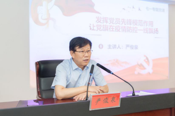 6月30日上午,城控集團黨委委員、總工程師嚴(yán)俊泉以《發(fā)揮黨員先鋒模范作用,讓黨旗在疫情一線飄揚》為題,在長江水務(wù)講授專題黨課。長江水務(wù)黨委副書記主持黨課,長江水務(wù)黨委班子成員、各黨支部書記、黨員代表和入黨積極分子參加本次學(xué)習(xí)。