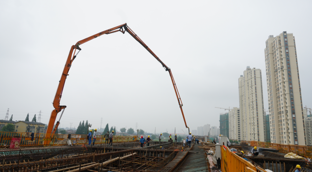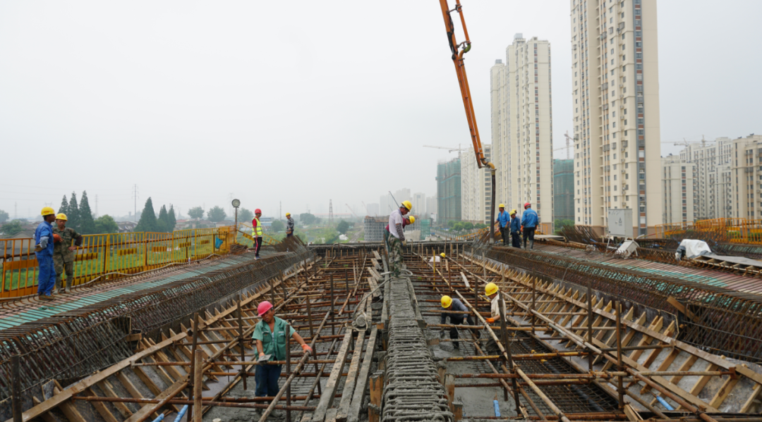 7月27日晚上9點(diǎn),經(jīng)過施工人員7小時連續(xù)作業(yè),運(yùn)河南北路快速化改造二期工程(萬福西路-物港路北)項目A匝道首聯(lián)箱梁底腹板順利澆筑。