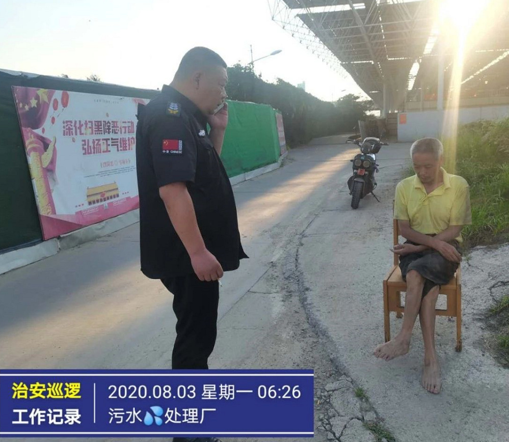 2020年8月3日上午6點20分,公司湯汪廠保安隊員呂明在廠區(qū)進行日常巡邏時,發(fā)現(xiàn)一位60多歲男性老人在廠區(qū)北門口來回徘徊,走動時步履蹣跚,神色焦慮不安,出于安保人員警覺性,他主動上前向老人了解具體情況,并將情況上報公司安保工作微信群。