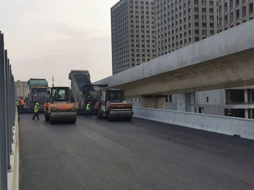 為確保按期高質(zhì)量、高標(biāo)準(zhǔn)完成瀝青攤鋪工作,自2020年11月15日該橋C匝道第7聯(lián)至C匝道第13聯(lián)處試驗(yàn)段瀝青順利攤鋪以來,項(xiàng)目部提前與瀝青拌合站聯(lián)系,確保瀝青混合料的及時(shí)供應(yīng);緊抓各項(xiàng)節(jié)點(diǎn)任務(wù),提前觀測(cè)天氣預(yù)報(bào),精準(zhǔn)計(jì)劃每天的施工任務(wù),加大人員、設(shè)備投入;施工過程中,參建各方加強(qiáng)組織協(xié)調(diào),對(duì)瀝青質(zhì)量、攤鋪溫度、攤鋪速度以及碾壓遍數(shù)做好監(jiān)督和記錄,有效的控制了攤鋪質(zhì)量。