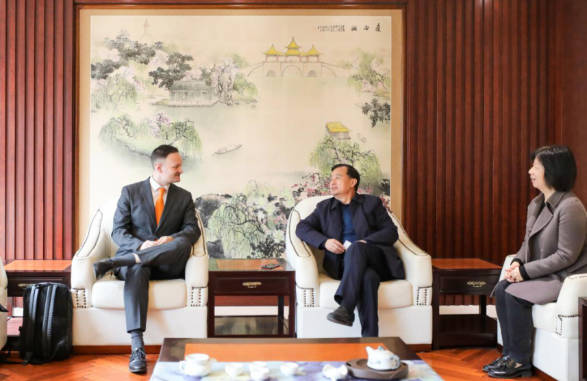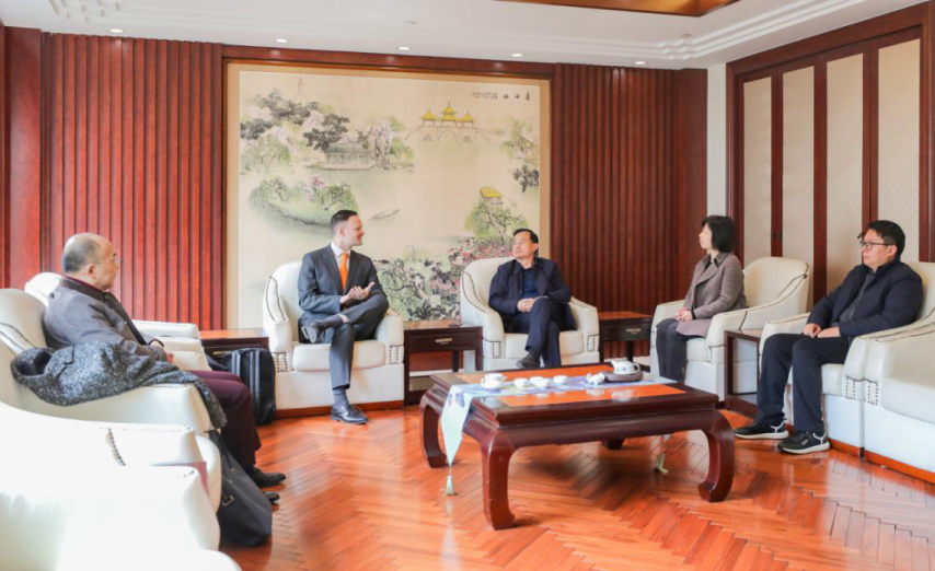 為推進揚州與布雷達兩市水務(wù)合作項目,3月3日,荷蘭貿(mào)易促進委員會南京代表處首席代表理查德先生、副代表何霖先生一行拜訪市城控集團,市城控集團黨委書記、董事長葉善祥,副總經(jīng)理周平與理查德先生一行進行了親切友好的會談和交流。市外辦副主任徐靜、城控集團相關(guān)子公司負(fù)責(zé)人參加了座談。