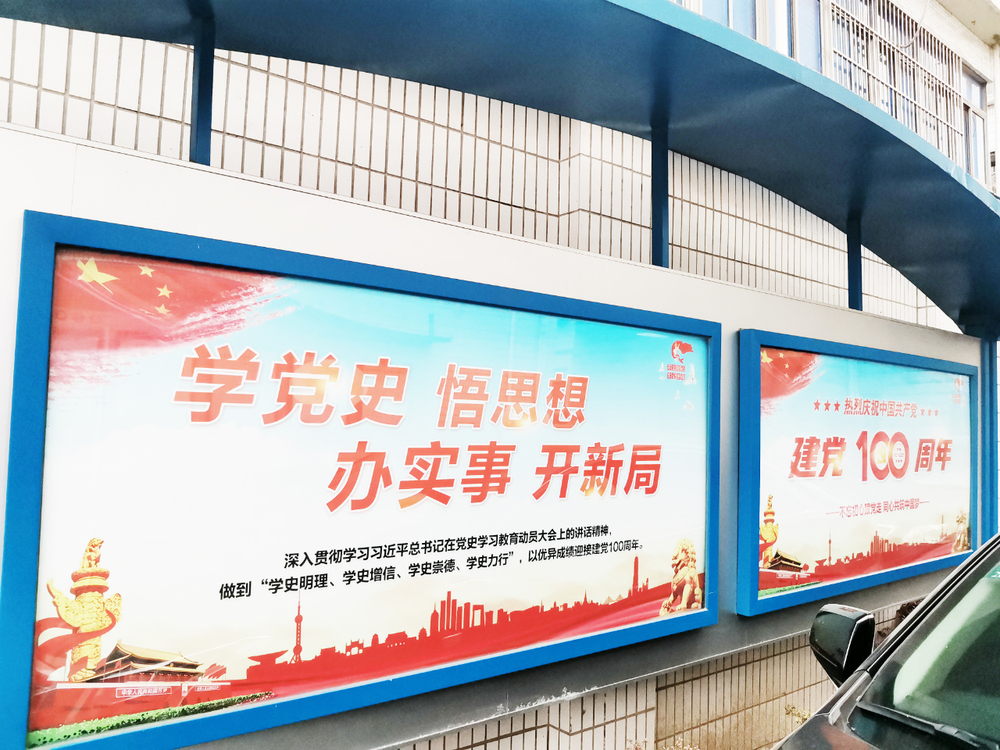 為全面扎實(shí)推進(jìn)黨史學(xué)習(xí)教育,長(zhǎng)江水務(wù)公司結(jié)合實(shí)際,對(duì)公司大院的宣傳欄進(jìn)行了更新,宣傳欄內(nèi)容主要圍繞“黨史十個(gè)關(guān)鍵詞”和“回顧中共一大至十九大”展開,內(nèi)容豐富、制作精美,圖文并茂地展示了中國共產(chǎn)黨波瀾壯闊的百年奮斗史以及全部的發(fā)展歷程,不僅打造了長(zhǎng)江水務(wù)專屬的黨史教育長(zhǎng)廊,而且通過耳目一新的宣傳內(nèi)容,潛移默化的教育形式營(yíng)造了濃厚的紅色氛圍。
