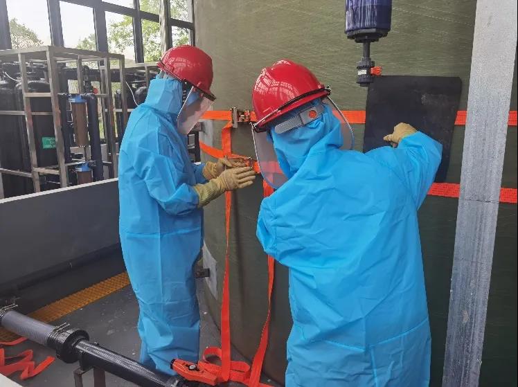 在結(jié)合理論學(xué)習(xí)之后,加強(qiáng)生產(chǎn)人員應(yīng)急處置和實(shí)操能力的演練。在演練環(huán)節(jié),模擬瓜洲變電所在生產(chǎn)運(yùn)行中35KV古洲線突發(fā)失電,值班人員啟動(dòng)應(yīng)急處置程序。班組人員按應(yīng)急預(yù)案步驟切除相關(guān)高壓低壓開關(guān)設(shè)備,再經(jīng)過一系列倒閘操作,迅速切換到到備用線路上,恢復(fù)了生產(chǎn)用電,并做好巡查匯報(bào)工作。演練采取實(shí)操方式進(jìn)行,整個(gè)倒閘操作過程步驟有序,嚴(yán)格按照突發(fā)事故處理流程進(jìn)行演練,嚴(yán)格使用規(guī)范的操作術(shù)語,對(duì)所涉及到的驗(yàn)電、分合開關(guān)、檢查設(shè)備等操作符合安規(guī)要求,達(dá)到了預(yù)期效果。為強(qiáng)化?;饭芾?,提升員工應(yīng)急處置能力。近日,頭橋水廠針對(duì)次氯酸鈉制備和管理的安全操作規(guī)程要求,組織了次氯酸鈉儲(chǔ)罐和投加管道泄漏兩個(gè)科目的應(yīng)急處置演練,通過提升應(yīng)急處置能力,不斷強(qiáng)化?;返墓芾砗褪褂?。