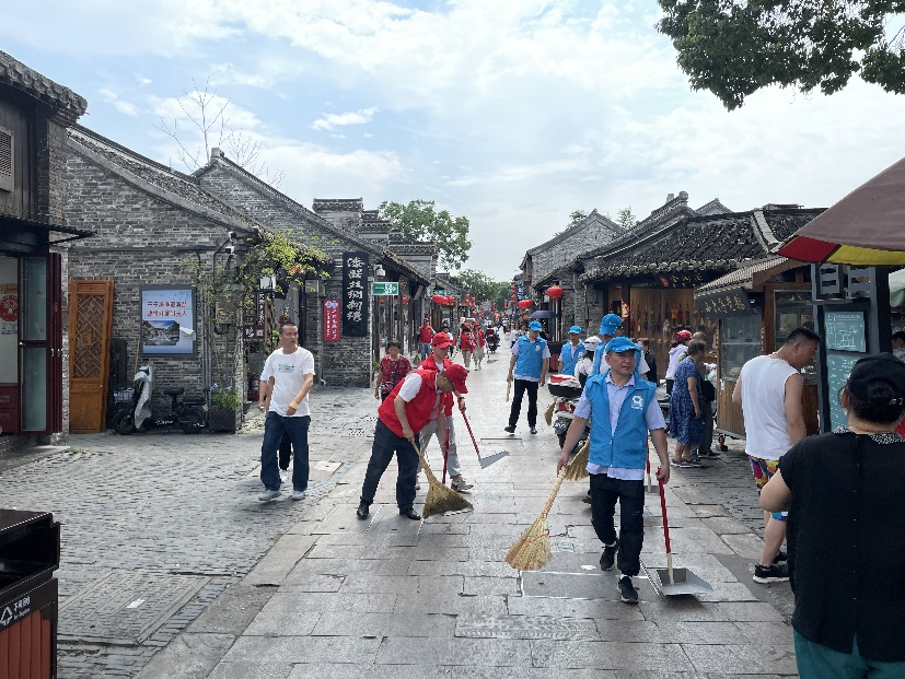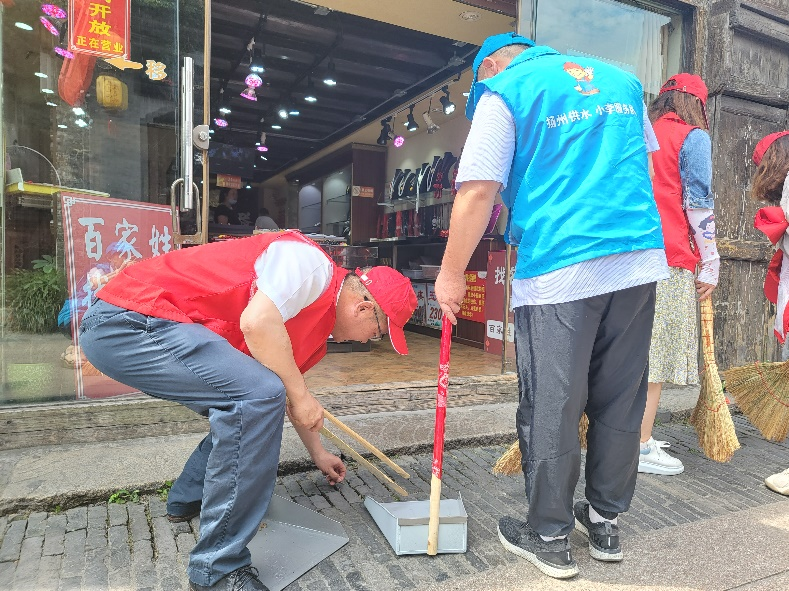 共建活動開始后,所有黨員合并隊伍,并分成兩隊。其中一隊帶著掃把、簸箕、夾子、垃圾袋,對東關(guān)街沿街進(jìn)行清掃,不錯過一張紙屑、一個煙頭、一片落葉;另一隊的黨員則是走訪沿街商鋪的用戶,詢問用戶商鋪中是否存在用水問題,同時對沿街水管進(jìn)行測漏檢查以及對消防設(shè)施進(jìn)行檢查維護(hù)。