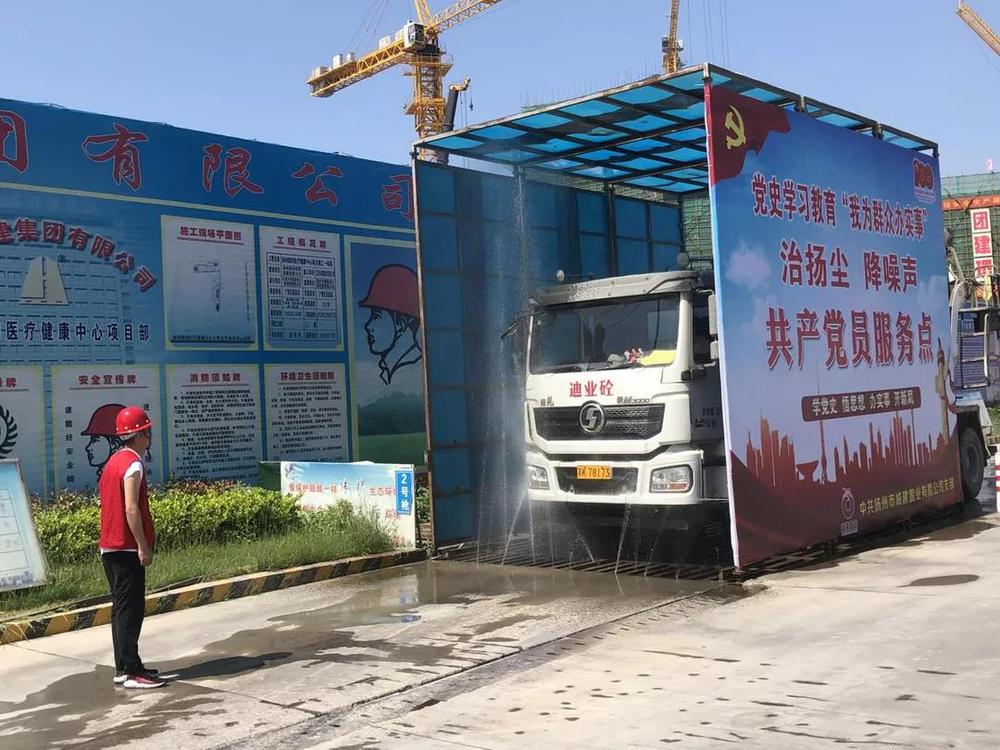 活動中,黨員志愿者兵分兩路出發(fā),一處向周邊群眾和施工作業(yè)人員分發(fā)宣傳我公司為保護(hù)城市生態(tài)環(huán)境底色開展的一系列揚(yáng)塵降噪舉措;另一處志愿者在項目出入口處指揮檢查進(jìn)出車輛沖洗情況,嚴(yán)禁拖泥帶污車輛駛出場外,影響周邊環(huán)境衛(wèi)生,造成城市道路污染。目前我公司在建項目所有建筑工地均增添灑水降塵設(shè)施,工地實施6個100%治理標(biāo)準(zhǔn),即:施工現(xiàn)場圍擋率、工地物料堆放覆蓋率、路面硬化率、車輛沖洗率、濕法作業(yè)率、運(yùn)土車輛密閉率均達(dá)到100%。隨后,黨員志愿者們在項目負(fù)責(zé)人的帶領(lǐng)下見證了“智慧工地”系統(tǒng)和BIM-VR安全教育系統(tǒng)在實際工作中的應(yīng)用,“智慧工地”的運(yùn)用實現(xiàn)了隨時隨地可對項目安全、質(zhì)量、揚(yáng)塵防控及進(jìn)度等各方面的全覆蓋無死角管理。大家在感慨國家科技水平日新月異進(jìn)步的同時也增強(qiáng)了學(xué)好本領(lǐng)多為群眾辦實事的思想自覺和行動自覺。