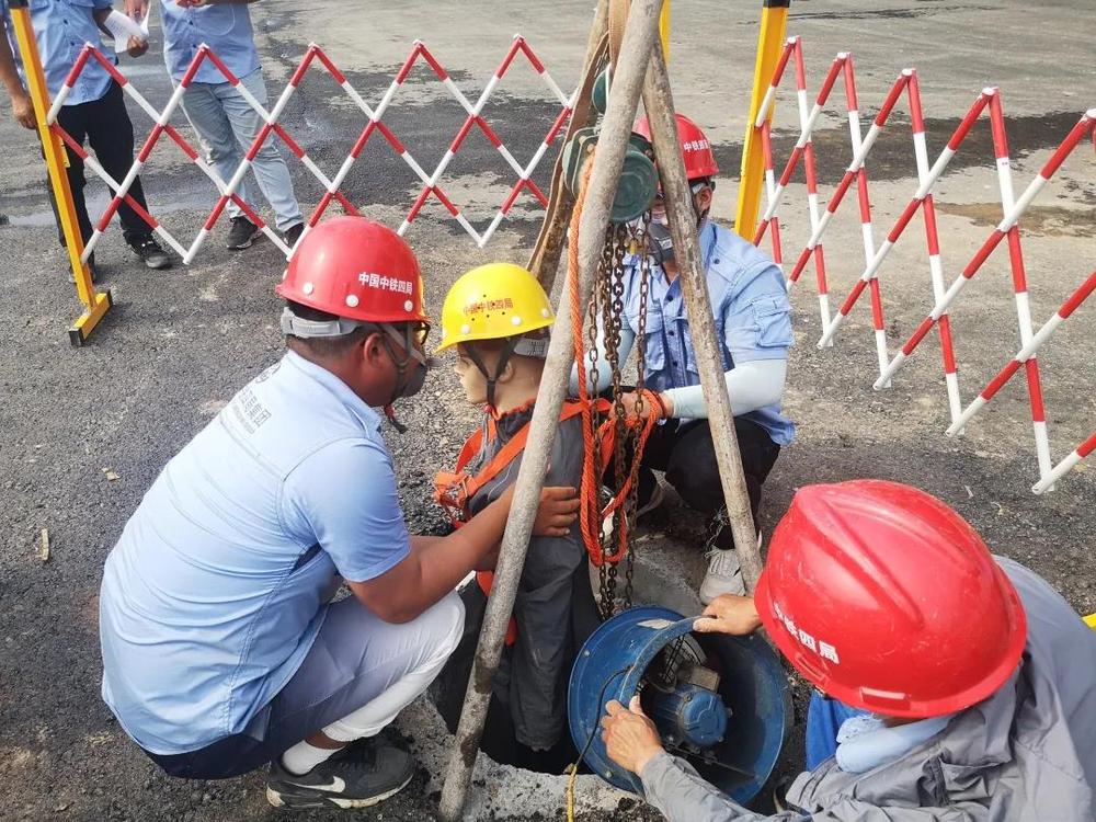 為切實(shí)做好安全生產(chǎn)工作,進(jìn)一步提高有限空間作業(yè)突發(fā)事件應(yīng)急處置水平,6月30日下午,萬福公司組織開展“有限空間作業(yè)突發(fā)事件”應(yīng)急救援演練活動(dòng)。萬福公司安全總監(jiān)、工程管理負(fù)責(zé)人和三條快速路項(xiàng)目安全管理人員參加活動(dòng)。
