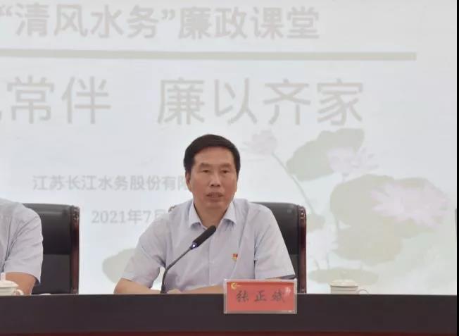 城控集團(tuán)黨委委員、長江水務(wù)黨委書記、董事長張正斌發(fā)表講話,他分別從家和萬事興、量變引起質(zhì)變、小心成為“獵物”這三個(gè)方面給在場所有人員再次敲響廉政警鐘。他表示,長江水務(wù)多年來各項(xiàng)工作取得的長足發(fā)展,飽含全體員工的辛勤付出和努力,更離不開職工家屬的關(guān)心與支持。家風(fēng)是黨風(fēng)的重要組成部分,家風(fēng)連著黨風(fēng),家廉才能政廉,全體黨員干部要從百年黨史中傳承優(yōu)良家風(fēng),把修身齊家落到實(shí)處,要和家人同心協(xié)力,守好家庭防線,真正把家風(fēng)建設(shè)內(nèi)化于心、外化于行,做到修身律己、廉潔齊家,為扎實(shí)推進(jìn)公司全面從嚴(yán)治黨向縱深發(fā)展,譜寫公司高質(zhì)量發(fā)展新篇章提供堅(jiān)強(qiáng)保障。