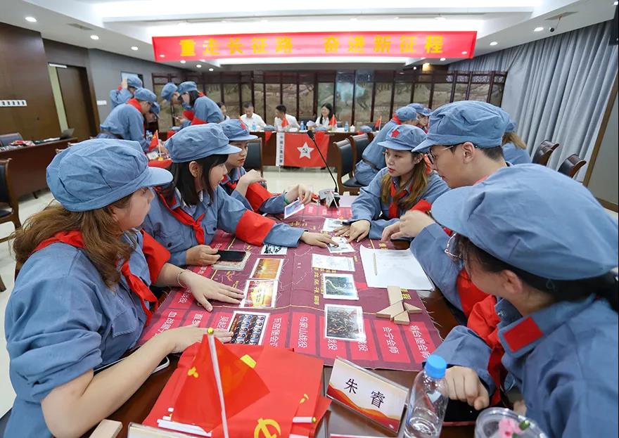 課程以講授、影片片段觀摩、模擬推演、小組討論、互動演示等形式,從歷史時間、戰(zhàn)役模擬、精神提煉、思想踐行等方面展開學習。活動現(xiàn)場,每位學員都深入其中,仿佛置身于那個戰(zhàn)火紛飛的年代,真實演繹了“面臨敵軍圍追堵截”“經(jīng)歷湘江血戰(zhàn)”“召開遵義會議”“上演飛奪瀘定橋”等重要事件,進一步領悟了革命先輩堅定信仰、不怕犧牲,勇往直前、堅忍不拔,眾志成城、百折不撓的偉大長征精神。