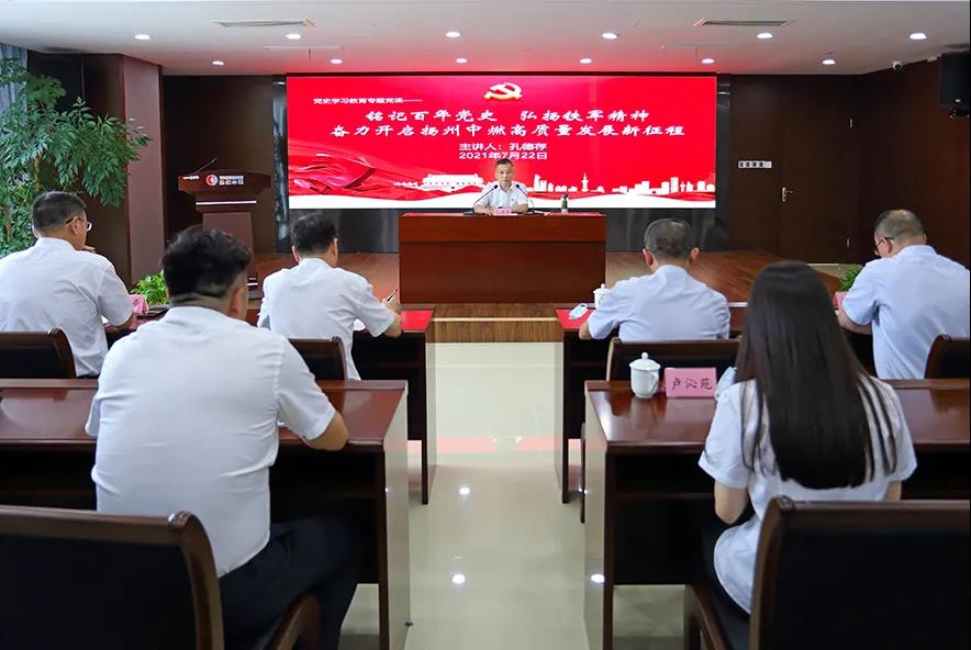 公司黨委書記、董事長以《銘記百年黨史,弘揚鐵軍精神,奮力開啟揚州中燃高質量發(fā)展新征程》為題,結合參加黨史學習教育以來的學習思考、交流感悟、調研實踐和問題反思,從“鐵心向黨,深學細悟;煉鐵成鋼,敢戰(zhàn)能勝;抓鐵有痕,守正創(chuàng)新”三個維度進行了闡述,既分析了問題,又提出了要求,為公司下一步發(fā)展指明方向。