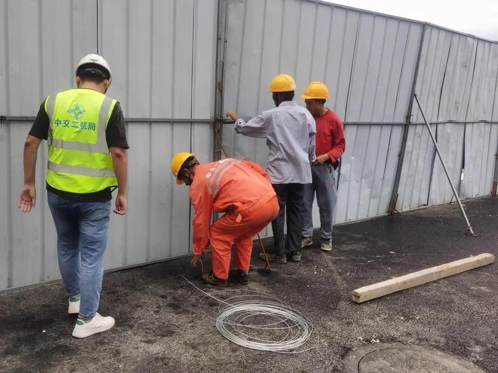 加強(qiáng)統(tǒng)籌協(xié)調(diào),做好充分準(zhǔn)備。各項(xiàng)目部抓早抓實(shí)抓細(xì)各項(xiàng)防汛防臺(tái)工作。一方面,制定應(yīng)急預(yù)案、落實(shí)搶險(xiǎn)隊(duì)伍、儲(chǔ)備應(yīng)急物資;另一方面,加強(qiáng)臨時(shí)用電管理,加固民工駐地生活板房、工地圍擋及土方覆蓋,砌筑擋水墻,及時(shí)轉(zhuǎn)移機(jī)械設(shè)備,不間斷抽排臨時(shí)便道積水,增加警示標(biāo)牌,確保生命安全。