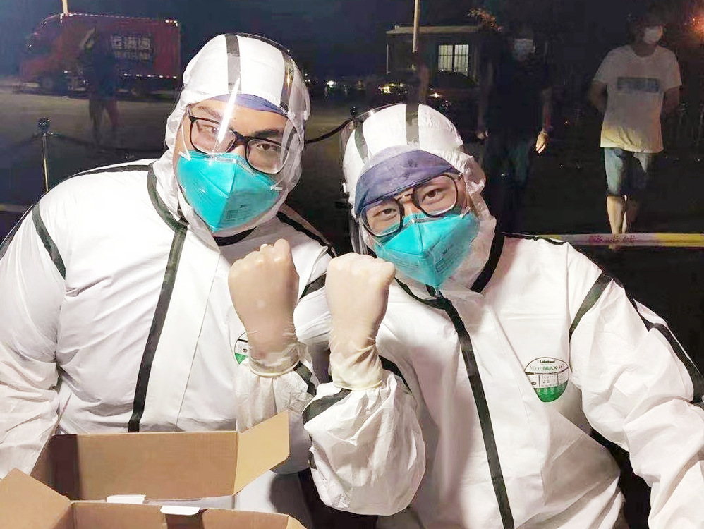 在核酸檢測點,劉寶帥頭戴口罩面罩,身穿防護服,頂著炎炎烈日,引導待檢測人員進行注冊、有序登記采集碼以及送樣等,全天完成社區(qū)核酸檢測6000枚。從白天到黑夜,忙碌奮戰(zhàn)14個小時,防護服換了5套,手上皮膚也因長時間戴防護手套,被汗水泡得浮腫發(fā)白,遇到不理解的群眾時,還要微笑面對、耐心指導,嗓子都沙啞了。問他一天下來,感受如何?他沉默了片刻說道“致敬所有醫(yī)護工作者,他們真的很偉大”。是??!哪有什么歲月靜好,只是有人在替你負重前行。劉寶帥用自己的實際行動踐行了他向黨組織靠攏的錚錚誓言,體現(xiàn)了他堅定的入黨決心意志,在黨和人民需要的時候,挺身而出、不畏疫情,站在一線,為抗擊疫情、守衛(wèi)家園貢獻自己的力量。
