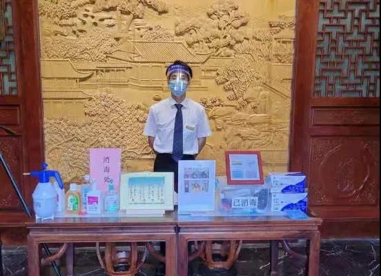 做好酒店防疫的第一道防線。工作人員充分發(fā)揮一崗多能、一人多專的作用,除了肩負對所有進入酒店的人員驗證“雙碼”,測量體溫,監(jiān)督所有進入酒店的人員佩戴口罩的責任外,還根據(jù)防疫接待服務(wù)要求,主動加強環(huán)境安全管理,在大堂設(shè)置1.5米分隔線進行登記,每日對整個酒店園內(nèi)外定時消毒。