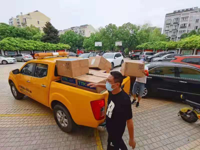 眾人拾柴火焰高。8月12日上午,第一批愛心防疫物資防護(hù)服500套、面罩200個、N95口罩500只、酒精4箱全部采購到位。下午,一輛滿載防疫物資的皮卡從管網(wǎng)公司出發(fā),駛向曲江新苑社區(qū),第一時間將這批一線急需的愛心防疫物資送到了社區(qū)工作人員手中。
