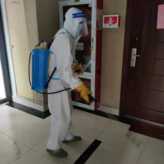 隨后,物業(yè)負(fù)責(zé)人立刻組織保潔人員用專用垃圾袋處理了該戶業(yè)主的垃圾送往指定處理地點,并對該業(yè)主房屋內(nèi)、所在樓層、單元入戶大廳、電梯等處進行了反復(fù)的、全方位的消毒,同時關(guān)停了電梯,封閉了6號樓1單元所有出入口。和消毒工作同步開展的,還有對其他業(yè)主的安撫與解釋,經(jīng)過物業(yè)工作人員不厭其煩、反反復(fù)復(fù)地對事件情況進行說明,大部分業(yè)主都表示了理解并平定了不安的情緒。