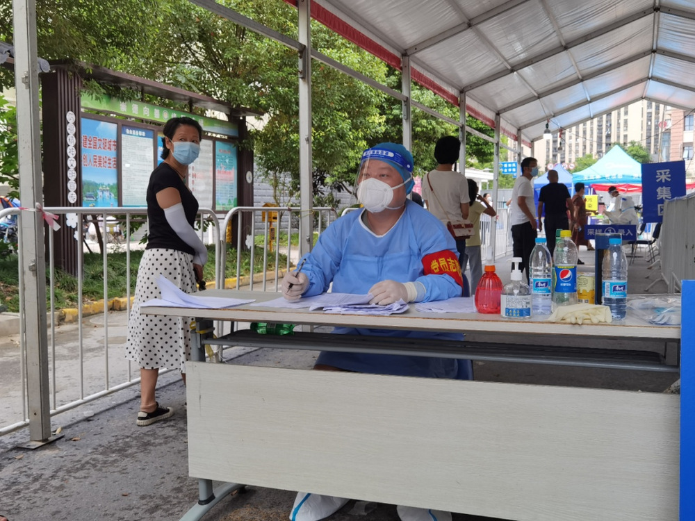 置業(yè)公司張軍,在瘦西湖街道濱湖社區(qū),24小時(shí)在崗值守,查看小區(qū)出入人員健康碼和通行證,并組織核酸檢測(cè)和志愿者服務(wù)工作。
