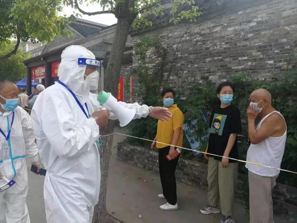 韓俊是長江水務(wù)公司的一名共產(chǎn)黨員,也是揚(yáng)州市民觀察員協(xié)會廣陵辦事處的市民觀察員,自7月28日揚(yáng)州疫情發(fā)生以來,他還多了個(gè)新身份——田家炳中學(xué)核酸檢測點(diǎn)志愿者。