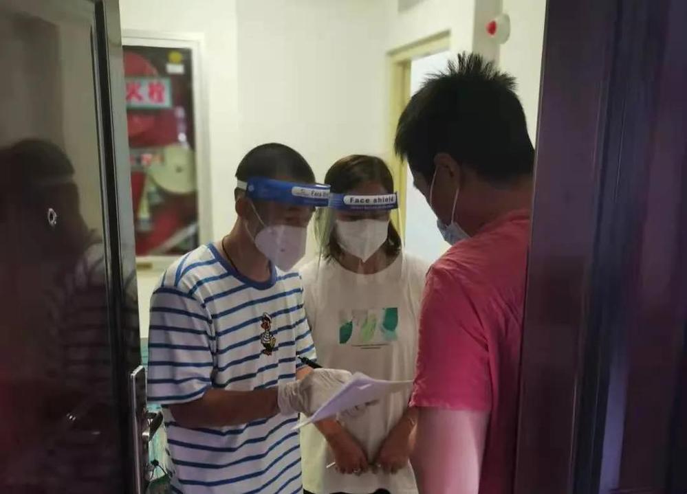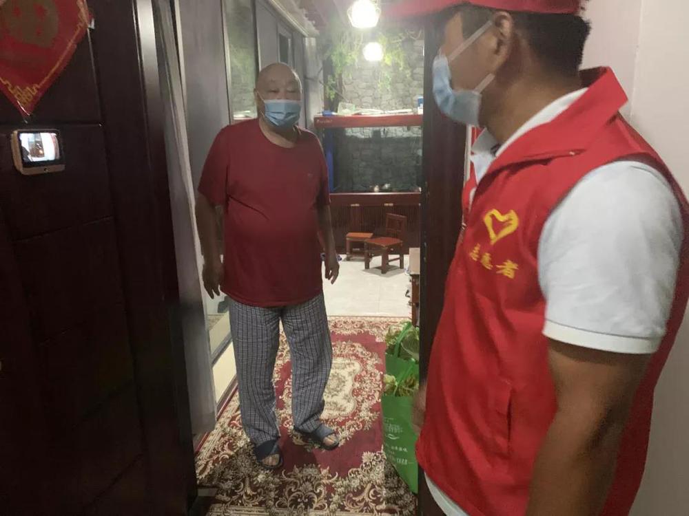 圖為資產(chǎn)公司副總經(jīng)理袁月翔和社區(qū)工作人員2人一組,進行入戶排查工作。