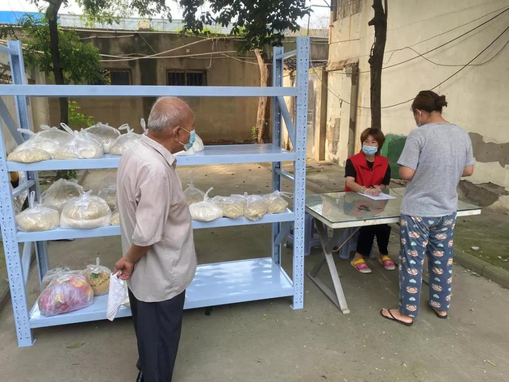 客服部職工張瑤為居民發(fā)放訂購(gòu)菜品,并做好核對(duì)登記工作。