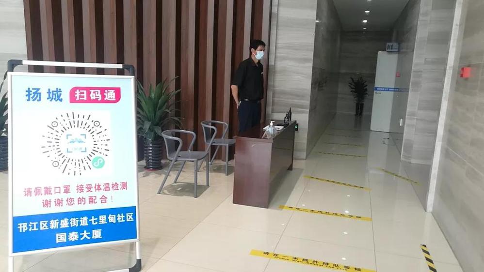 接到可以辦理復(fù)工復(fù)產(chǎn)的通知后,國泰物管處一邊迅速按照屬地防疫指揮部要求,制定了疫情防控預(yù)案,并完成資料申報(bào);一邊抓緊對大廈進(jìn)行了一系列防控措施的現(xiàn)場部署。9月4日,現(xiàn)場完成了5臺“揚(yáng)城掃碼通”一體機(jī)的安裝,在各出入口張貼了二維碼,同時(shí)做好出入口防控崗人員的崗前培訓(xùn),尤其是熟練掌握一體機(jī)的使用和故障排查培訓(xùn),以便保障有序通行;9月5日上午,關(guān)停地下車庫電梯,完成通道導(dǎo)行標(biāo)識張貼,同時(shí)根據(jù)反復(fù)規(guī)劃的合理線路,除預(yù)留的2個(gè)消防通道外,其余出入口全部封閉;9月5日下午,完成地面一米線布設(shè),為有序掃碼和乘坐電梯做好準(zhǔn)備。疫情防控期間,所有進(jìn)入大廈的工作人員需按照指引,從規(guī)定入口和通道通行,并需經(jīng)過“揚(yáng)城掃碼通”、現(xiàn)場登記、自動(dòng)測溫三道關(guān),才能進(jìn)入大廈內(nèi)。