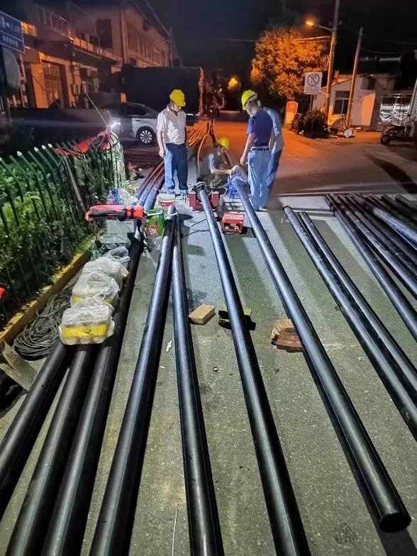 與此同時,長江水務公司抓緊勘察設計,制定出最快的恢復供水方案:采用最安全、最先進、最快速的拖管工藝新裝過河管道,選用最優(yōu)質材料的PE管材。施工人員爭分奪秒與時間“賽跑”,他們冒著35度的高溫,晝夜不間斷施工26小時,克服河面寬、水流急、河床深等諸多不利因素,在水下18米實施拖管作業(yè),把500多米長的管道鋪設到河對岸的山河村。9月12日下午6點,完成管道碰接恢復供水,并進行管道沖洗、水壓測試,居民安全用上了自來水。