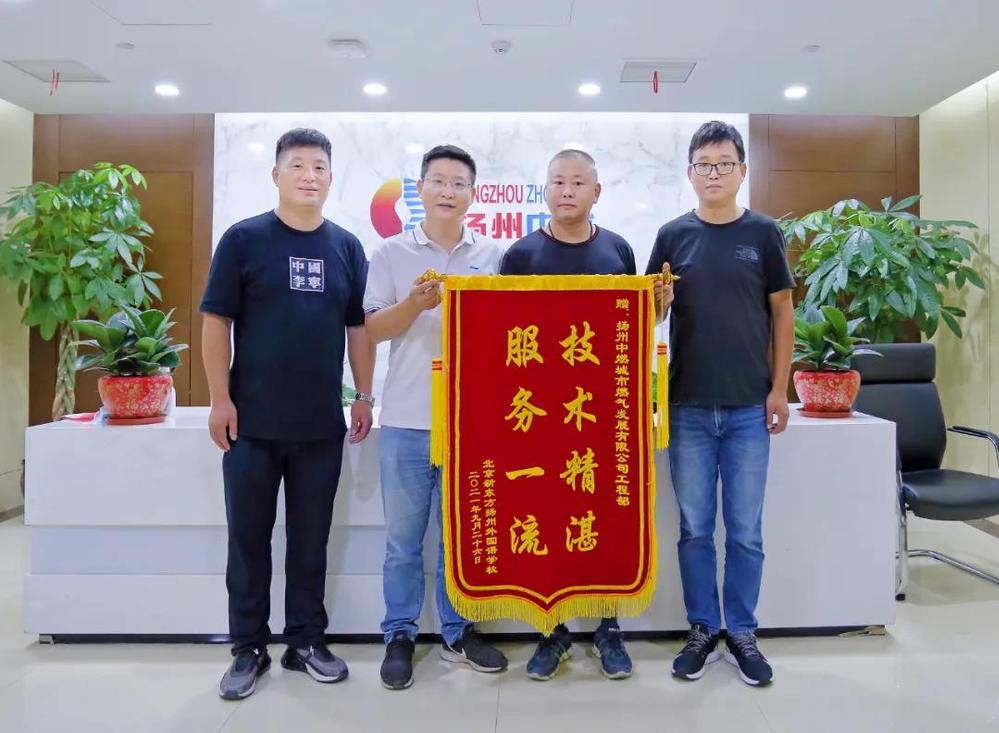 9月28日上午,新東方揚州外國語學(xué)校中學(xué)部膳食中心主任高乃軍一行來到揚州中燃,向公司贈送了一面“技術(shù)精湛,服務(wù)一流”錦旗,以表達對揚州中燃公司克服諸多困難,保障學(xué)校師生安全用氣的感激之情。