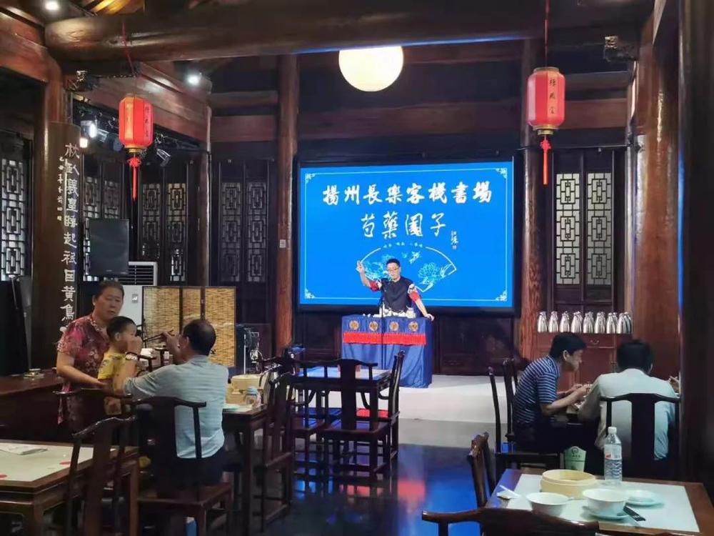 位于揚(yáng)州東關(guān)街的長(zhǎng)樂(lè)客棧,舊時(shí)是將軍、鹽商的府邸,置身其中,仿佛時(shí)光倒流。如今長(zhǎng)樂(lè)客棧被改造成園林式酒店,致力于傳承、發(fā)揚(yáng)淮揚(yáng)美食。10月1日國(guó)慶節(jié)當(dāng)天,“揚(yáng)州·淮揚(yáng)美食書場(chǎng)鹽商早茶品鑒”在長(zhǎng)樂(lè)客棧酒店棲鳳堂舉行。