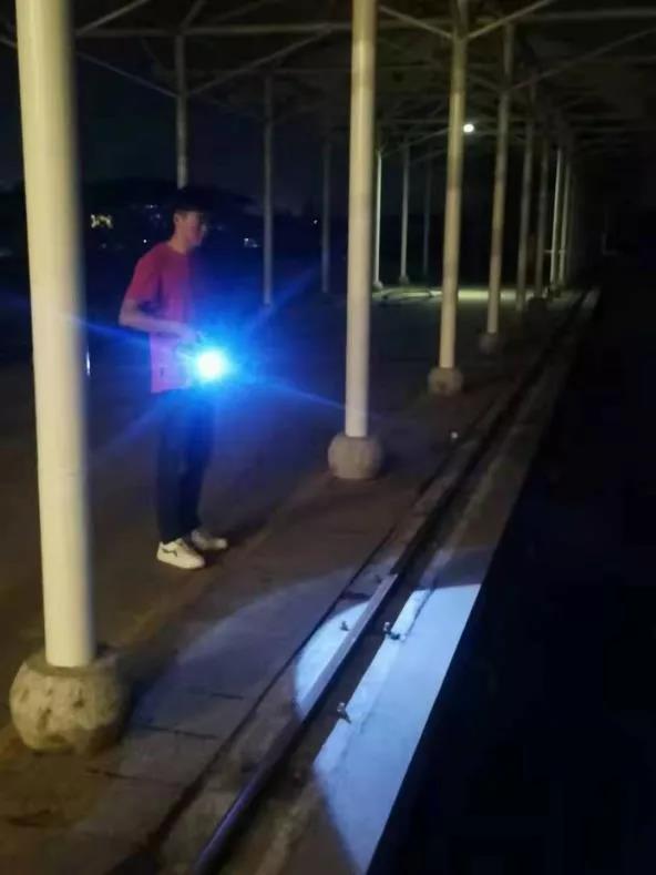 李千龍夜間打著手電筒巡視生產(chǎn)情況。