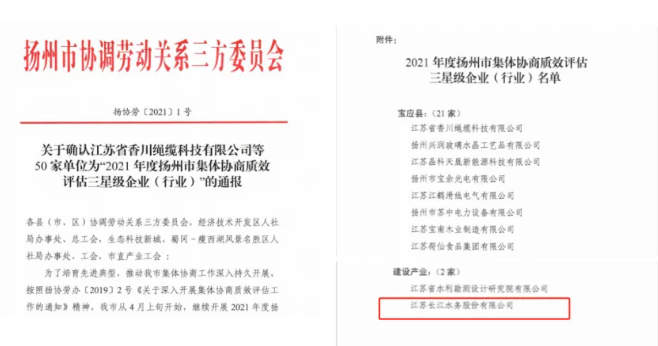 9月29日,揚(yáng)州市協(xié)調(diào)勞動(dòng)關(guān)系三方委員會(huì)公布“2021年度揚(yáng)州市集體協(xié)商質(zhì)效評(píng)估三星級(jí)企業(yè)”名單,江蘇長(zhǎng)江水務(wù)股份有限公司名列其中。