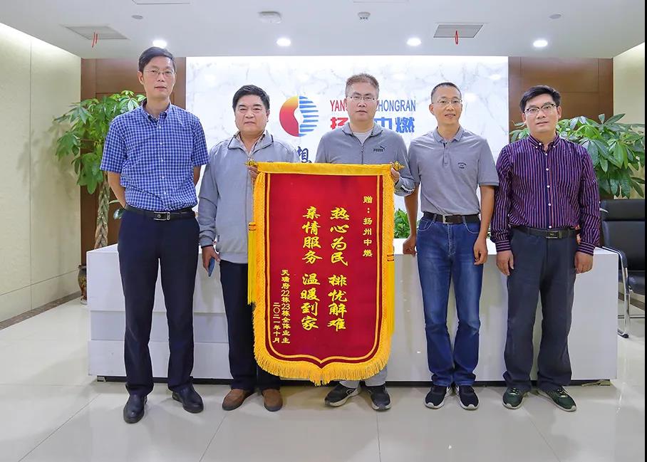 10月11日下午,揚州天瑞府22、23幢的業(yè)主代表來到揚州中燃公司,送上了一面“熱心為民、排憂解難,親情服務、溫暖到家”錦旗,以表達對揚州中燃公司為民辦實事的感激之情,讓業(yè)主感受到了春天般的溫暖。