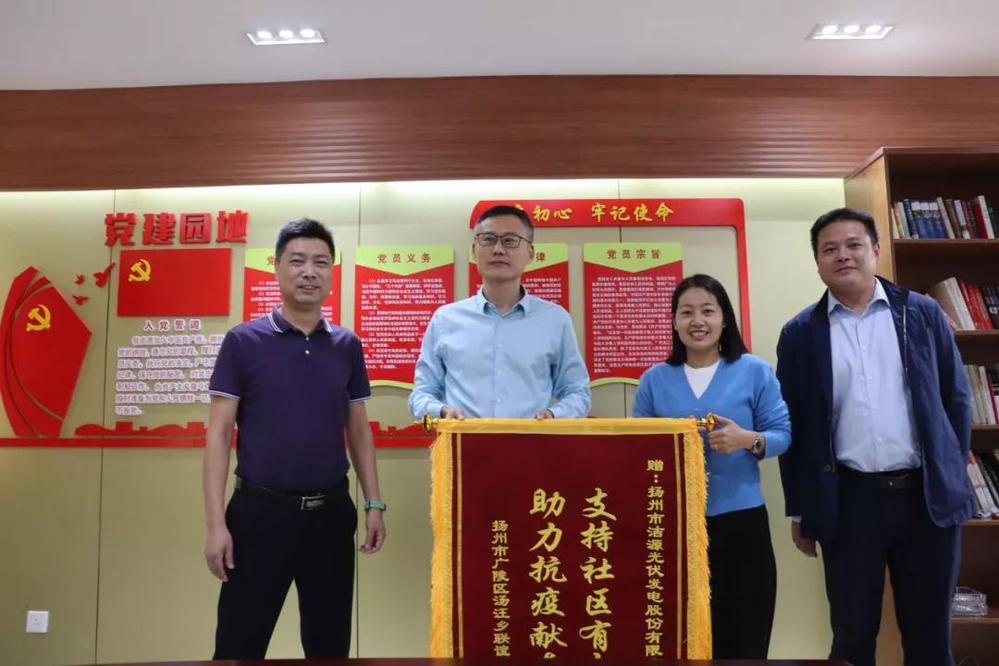 10月13日上午,廣陵區(qū)湯汪鄉(xiāng)聯誼南園社區(qū)將一面印有“支持社區(qū)有大愛,助力抗疫獻真情”的錦旗送到光伏公司,對光伏公司為社區(qū)辦實事、解難題的真誠服務表示感謝。