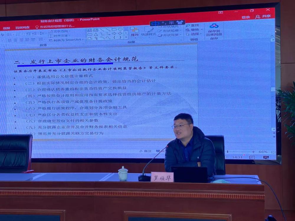 本次活動邀請?zhí)旌鈺嫀熓聞账_順華對全體人員進行培訓。在培訓中羅順華圍繞發(fā)行上市企業(yè)財務會計規(guī)范法規(guī)體系的四個層次及內(nèi)部控制的五個要素,對大家進行了深入講解和分析。