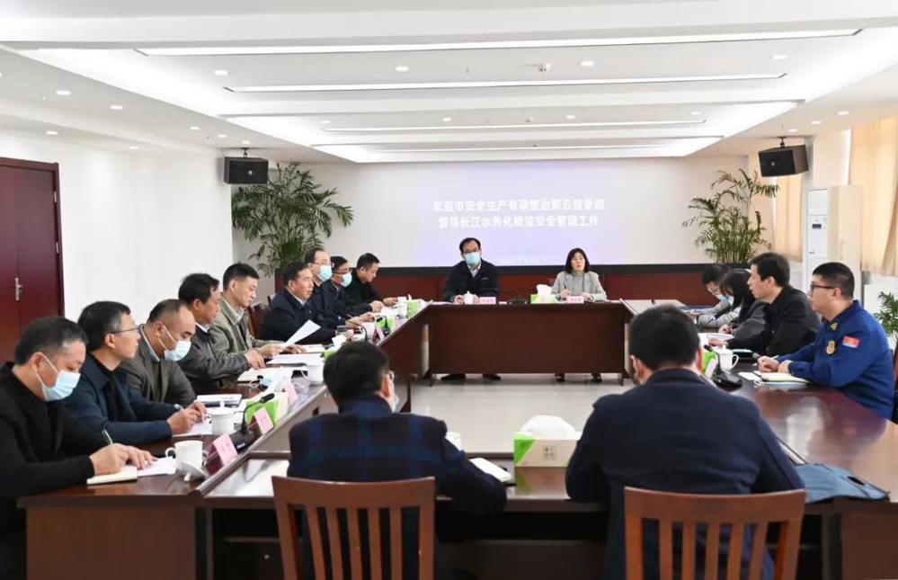 督查組一行首先來到長江水務(wù)水質(zhì)檢測中心對?;穾旆?、儀器室、氣源室等重點區(qū)域進行了現(xiàn)場督查,并在隨后召開的督查會上聽取了長江水務(wù)、潔源排水公司關(guān)于化驗室隱患排查工作開展情況的報告。