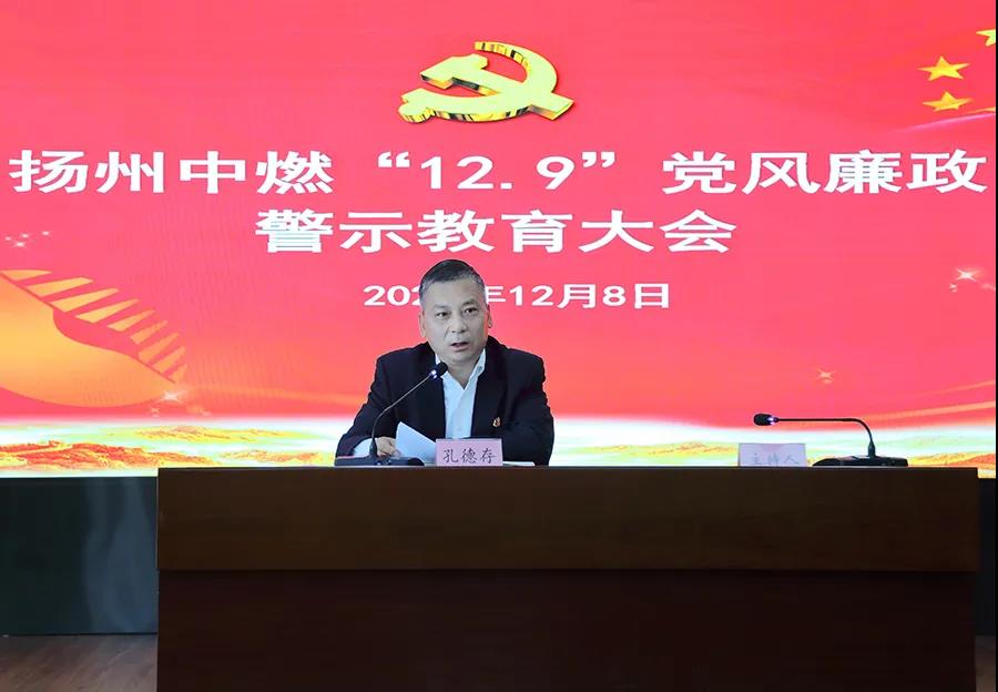 為進一步貫徹落實全面從嚴治黨方針,強化黨員干部的廉潔自律意識,推動黨風廉政建設向縱深發(fā)展,12月8日下午,揚州中燃公司召開黨風廉政警示教育專題大會。公司領導班子全體成員、中層干部及關(guān)鍵崗位人員參加會議。