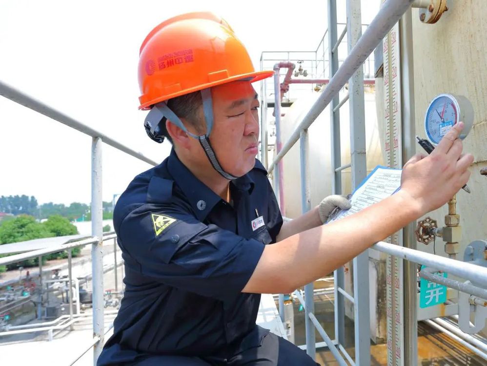 他及時(shí)收看天氣預(yù)報(bào),夏季在觀察到氣溫超過(guò)警戒線后,他迅速組織開(kāi)展噴淋作業(yè),對(duì)儲(chǔ)液罐罐體進(jìn)行降溫,確保設(shè)備安全穩(wěn)定運(yùn)行。當(dāng)冬季降溫前,他對(duì)場(chǎng)站罐區(qū)進(jìn)行仔細(xì)巡查,對(duì)排污閥進(jìn)行排污作業(yè),防止出現(xiàn)閥門凍裂等安全隱患。