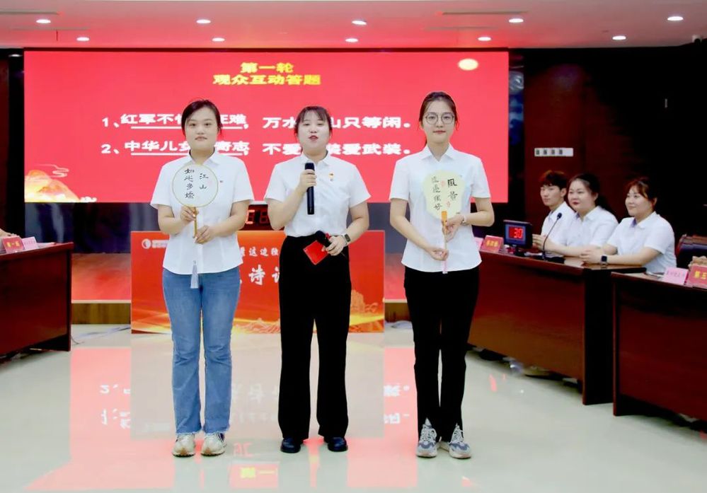 本次活動,共有來自公司五個黨支部和團支部組成的6支代表隊參賽。競賽分為定人必答題、搶答題、風險題、附加題和觀眾有獎答題。競賽現(xiàn)場精彩紛呈、高潮迭起,選手們準備充分、沉著應答、踴躍搶答,展現(xiàn)了良好的心里素質和奮勇爭先的精神風貌。在必答題、搶答題環(huán)節(jié),現(xiàn)場觀眾深刻感悟到了毛澤東詩詞中超“燃”的故事、超“燃”的情懷,領略了共產黨人高昂的戰(zhàn)斗意志和斗爭風骨。