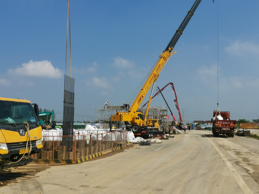 運河路北延工程起點位于江運互通,依次上跨寧啟鐵路,下穿北沿江高鐵,終點位于槐泗河以南約60米處,道路總長約1.28公里。工程于2023年6月開工建設(shè),計劃于2024年12月竣工通車。目前,已完成鋼筋加工廠搭設(shè)、交通導(dǎo)改等工作,正在進(jìn)行樁基、承臺、墩柱及支架搭設(shè)等施工。