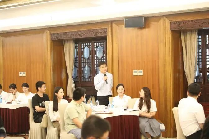 在之后的我點(diǎn)你答和分組討論環(huán)節(jié),大家圍繞文旅融合發(fā)展、街區(qū)運(yùn)營、綠色低碳新業(yè)態(tài)、大運(yùn)河十里外灘和小秦淮河項(xiàng)目建設(shè)等話題展開討論,并就推動(dòng)集團(tuán)及自己所在企業(yè)的高質(zhì)量發(fā)展獻(xiàn)出妙計(jì)良策,現(xiàn)場氛圍活躍,與會(huì)青年代表踴躍發(fā)言,紛紛提出自己的看法。集團(tuán)領(lǐng)導(dǎo)針對(duì)青年代表的精彩發(fā)言,現(xiàn)場與青年代表們深入交流互動(dòng)。