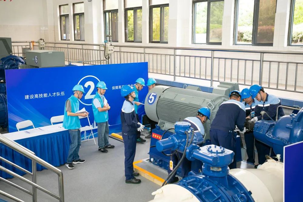 本次競(jìng)賽自2023年7月下發(fā)實(shí)施方案,得到了全省供水行業(yè)從業(yè)人員的積極響應(yīng)和廣泛參與,經(jīng)過各市組織開展選拔賽的激烈角逐,來自全省各地供水行業(yè)的13支代表隊(duì)近百名選手進(jìn)入決賽。決賽由理論考試、現(xiàn)場(chǎng)實(shí)操兩個(gè)環(huán)節(jié)組成,內(nèi)容涵蓋供水行業(yè)泵站運(yùn)行工各類專業(yè)知識(shí)技能,包括識(shí)圖、水泵、電力拖動(dòng)、高低壓電氣設(shè)備、繼電保護(hù)、PLC、水質(zhì)標(biāo)準(zhǔn)、設(shè)備運(yùn)行、儀表、班組及生產(chǎn)管理、安全生產(chǎn)知識(shí)等。