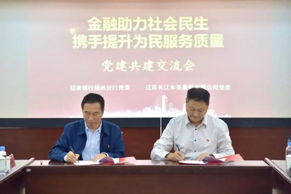 招商銀行揚州分行一行人員首先參觀了長江水務(wù)寶帶營業(yè)大廳、第五黨支部黨員活動室和供水調(diào)度(客服)中心。隨后,共建雙方分別介紹了經(jīng)營發(fā)展情況,就提高服務(wù)質(zhì)量和服務(wù)能力等開展了座談交流。城控集團黨委委員、長江水務(wù)黨委書記、董事長張正斌和招商銀行揚州分行黨委書記、行長喻坤簽署《黨建共建協(xié)議書》。