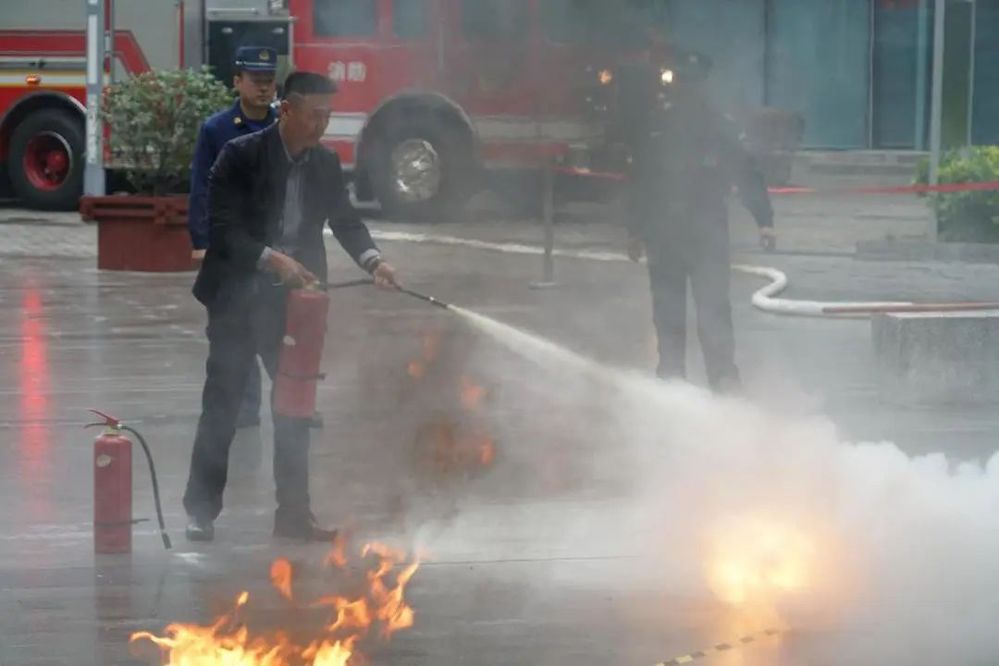 在消防疏散應急演練環(huán)節(jié),演練人員模擬國泰大廈發(fā)生火災,開展了值班人員確認火情、初期滅火、人員疏散逃生、報警和引接消防員等應急演練流程。同時,邗江區(qū)消防大隊在內(nèi)街廣場開展了消防滅火器的使用培訓,職工、物業(yè)管理、業(yè)主代表等人員參與了滅火器使用實操。