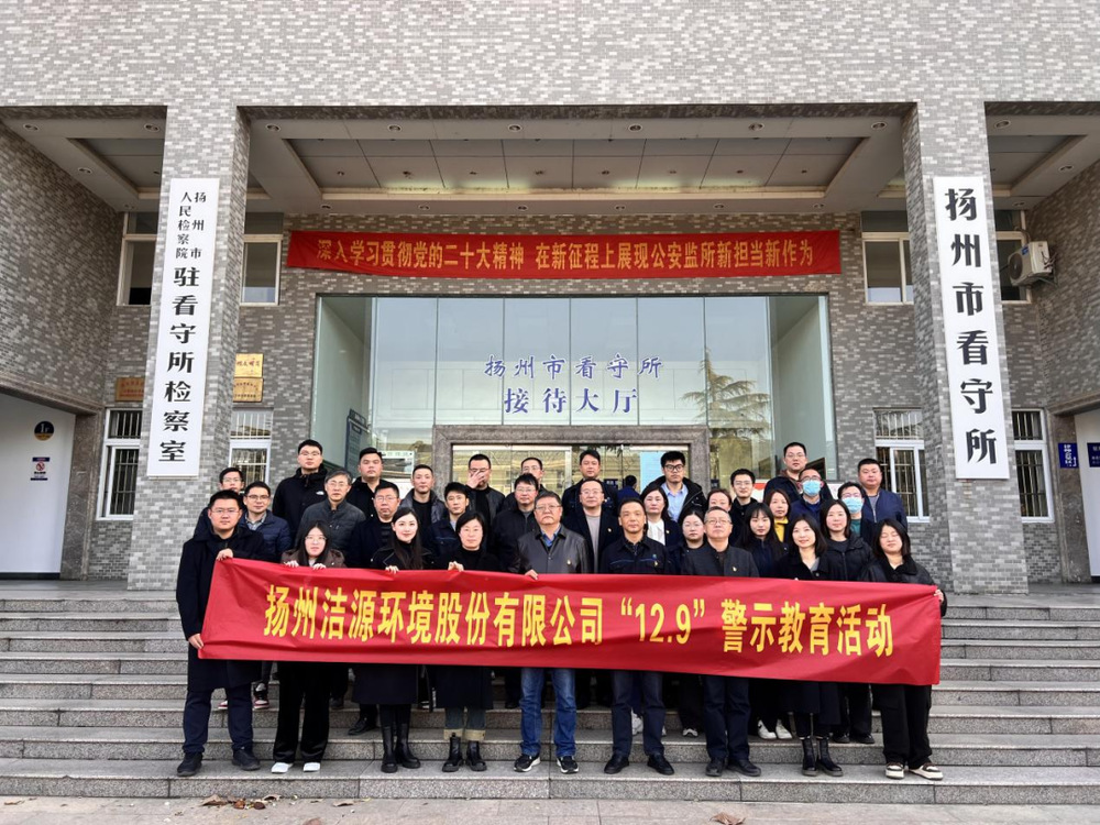 12月7日下午,揚(yáng)州潔源環(huán)境股份有限公司組織干部職工赴揚(yáng)州市看守所開展“12·9”黨風(fēng)廉政教育日活動(dòng)。