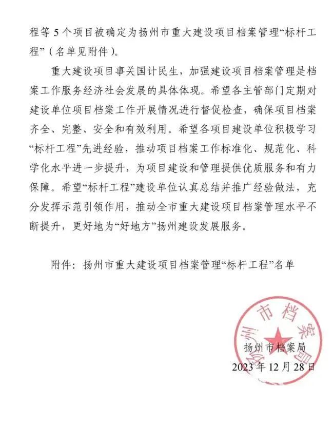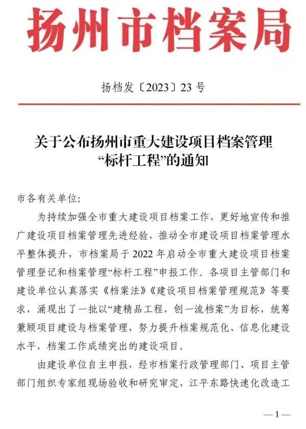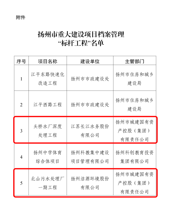 近日,市城控集團頭橋水廠深度處理工程項目、北山污水處理廠一期工程榮獲揚州市檔案局頒布的揚州市重大建設(shè)項目檔案管理“標(biāo)桿工程”榮譽稱號。