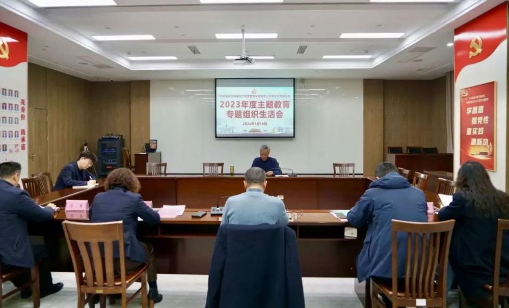 1月18日下午,建盛公司黨支部召開2023年度主題教育專題組織生活會。集團黨委委員、名城公司總經理戴興春帶隊到會指導,公司領導班子成員參加會議。
