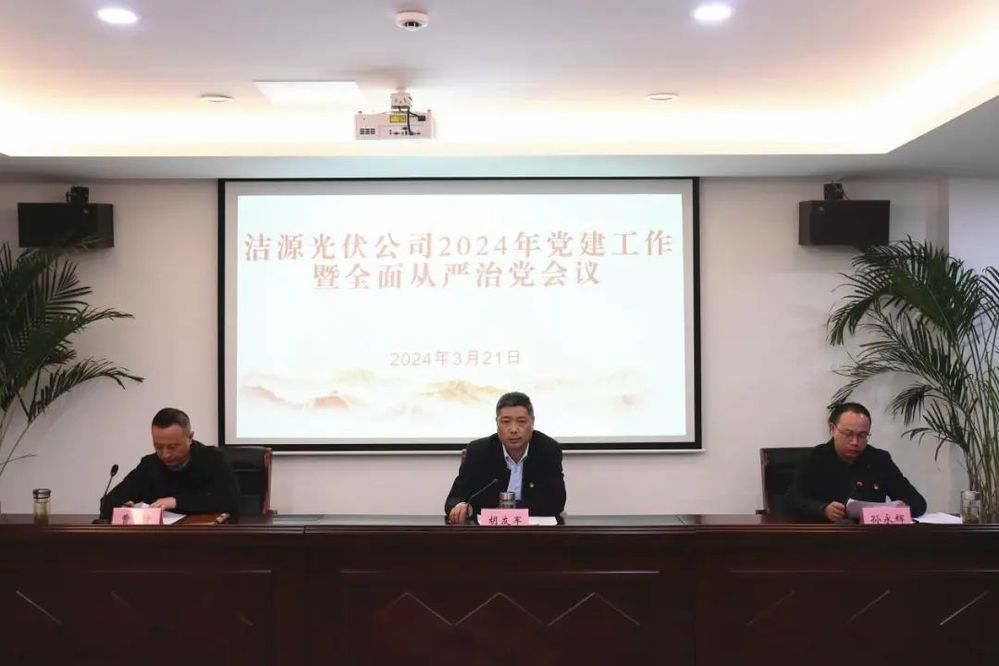 3月21日上午,潔源光伏公司召開2024年黨建工作暨全面從嚴治黨會議,全體黨員、干部參加會議。