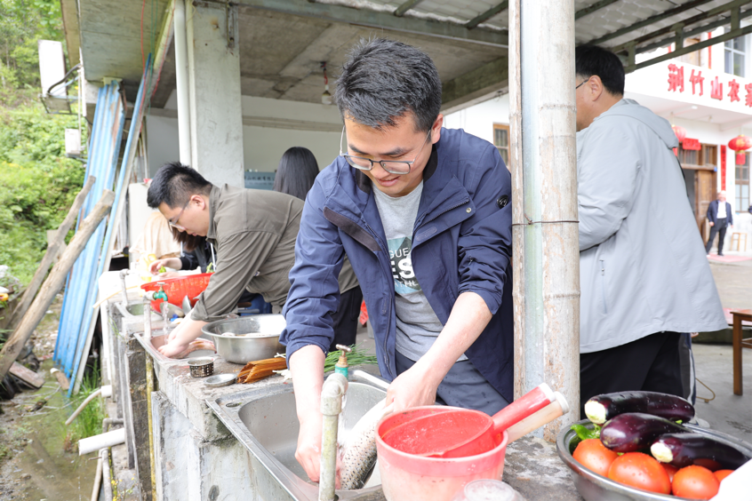在紅色拓展環(huán)節(jié),全體學員前往毛澤東宣布“三大紀律”的荊竹山開展鐵紀教育、穿越峽谷、搶救傷員、自做紅軍餐等團隊挑戰(zhàn)項目。制作紅軍餐時,學員們利用準備好的食材,大顯身手,個個化身做飯能手。劈柴、生火、洗菜、擇菜、切菜、擺盤,大家分工合作,每一個環(huán)節(jié)都配合默契,每一個步驟都井然有序。用著大鍋灶,燒著柴火飯,一道道色香味俱全的佳肴被端上桌,得到了大家的一致好評。通過多個團隊合作項目,既增強了學員們的團隊協(xié)作能力,又展現(xiàn)了學員們朝氣蓬勃的精神風貌和銳意進取的昂揚斗志。
