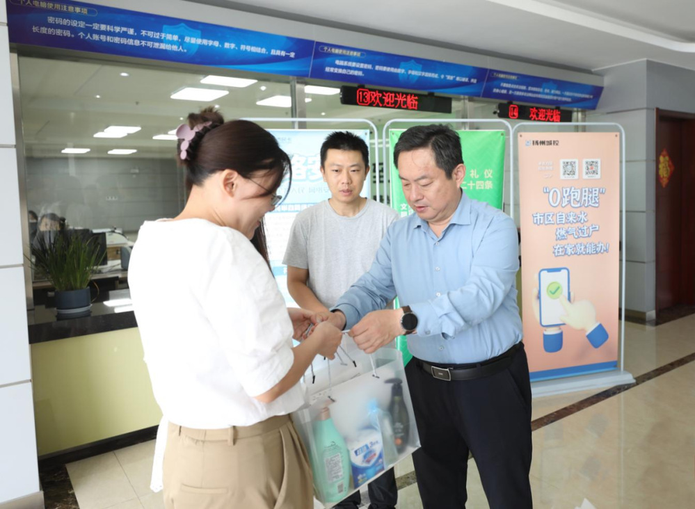“高溫天氣,工作辛苦,大家要好好照顧自己,做好個(gè)人防護(hù)。” 炎炎夏日送清涼,滴滴關(guān)愛暖人心。每到一處,城控集團(tuán)董事長張思忠都詳細(xì)詢問職工們高溫天氣下的工作和生活狀況,叮囑大家,勞逸結(jié)合,做好防護(hù),確保安全生產(chǎn)和身體健康。