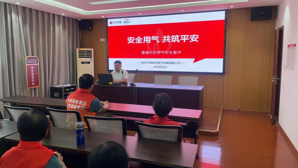 在社區(qū)會議室,揚州中燃“藍焰”志愿者還為即將使用天然氣的莊臺居民,帶去了一場燃?xì)獍踩褂弥黝}講座,對燃?xì)獍踩WR、夏季安全用氣注意事項、燃?xì)馐鹿试蚍治龅冗M行了詳細(xì)的講解。