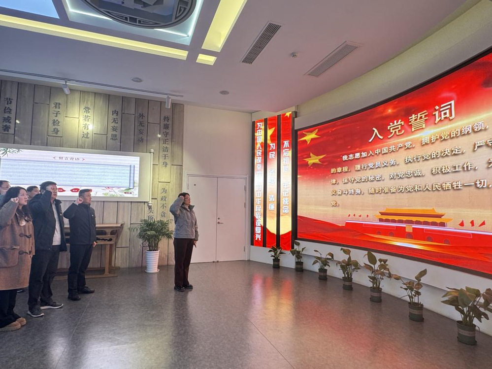 在工作人員的講解下,一件件觸目驚心的反腐案例,一聲聲痛心疾首的懊惱懺悔,讓在場的每一位黨員干部的內(nèi)心受到了強(qiáng)烈的震撼。參觀結(jié)束后,黨員們在館內(nèi)莊嚴(yán)重溫入黨誓詞,再憶入黨初心。